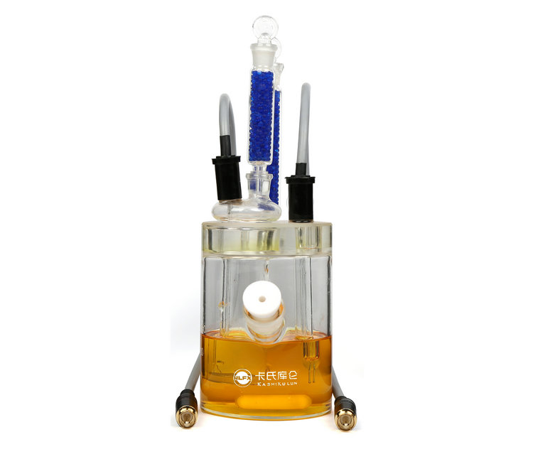 電解池:用于測定樣品中的水分,由陰極室(電解電極)干燥管、電解電極、陰極室(電解電極內(nèi)腔)、攪拌子、陽極室(電解池瓶)干燥管、測量電極、進樣旋塞、陽極室(電解池瓶)組成。